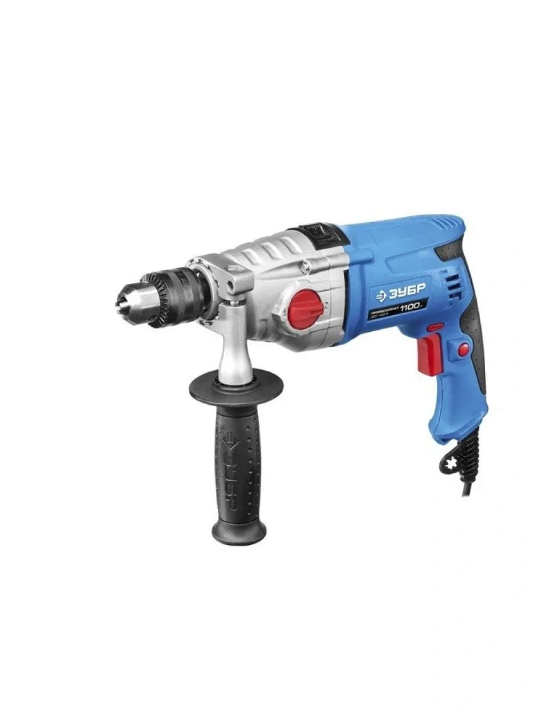 Ударная дрель Зубр ЗДУ-1100-2 ЭРММ2 - мощный и легкий инструмент с двумя режимами работы и двухскоростным редуктором. Модель имеет дополнительную рукоятку-пенал, в которой можно хранить оснастку. Также она помогает лучше удерживать инструмент во время работы. Металлический корпус редуктора продлевает срок службы дрели. Фиксация клавиши "Пуск" делает длительную работу более удобной. Графитовые щетки имеют увеличенный срок службы, ресурс не менее 50 часов.