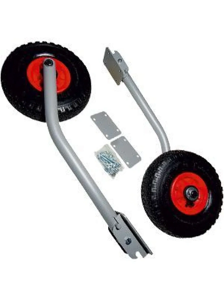 Устанавливаются на транец надувной лодки и подобно самолетным шасси имеют два положения: нижнее - для суши и верхнее - для воды. Фиксация стоек в разных положениях происходит при помощи подпружиненных защелок, которые легко передвигаются пальцами руки.