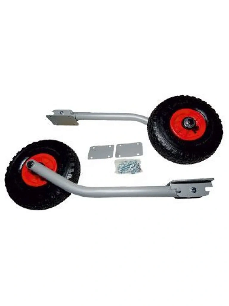 Устанавливаются на транец надувной лодки и подобно самолетным шасси имеют два положения: нижнее - для суши и верхнее - для воды. Фиксация стоек в разных положениях происходит при помощи подпружиненных защелок, которые легко передвигаются пальцами руки.