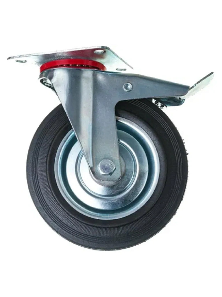 Обод поворотного колеса изготовлен из высокопрочной стали и оцинкован. Сама шина колеса выполнена из черной резины высокого качества, которая справляется с различными воздействиями внешней среды и поглощает вибрации и шум.