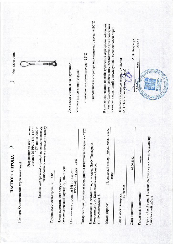 Одноветвевой строп производится согласно регламентирующим документам: ГОСТ 25573-82 и РД-10-33-93.