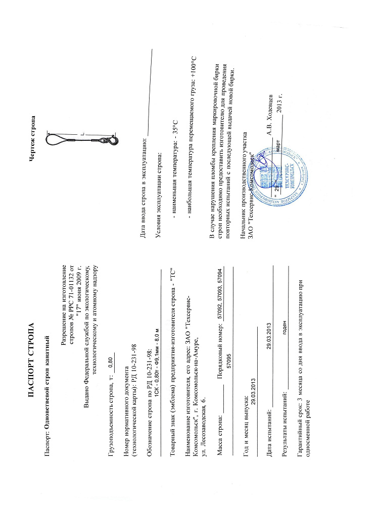 Одноветвевой строп производится согласно регламентирующим документам: ГОСТ 25573-82 и РД-10-33-93.