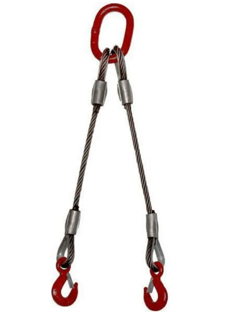 Строп двухветвевой канатный (строп 2СК) конструктивно состоит из разборного звена типа Рт и двух канатных ветвей, а также чалочного крюка типа Кч1 на одном конце ветви и петлей с коушем на другом. Вместо крюка также можно использовать грузоподъемные захваты или такелажную скобу.