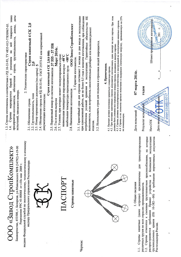 Состоит из 4 ветвей, треугольного звена соответствующей грузоподъемности и крюков.