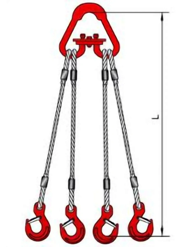 Стропы из стального каната 4СК используются для подъема грузов, оснащенных четырьмя строповочными петлями, проушинами.
