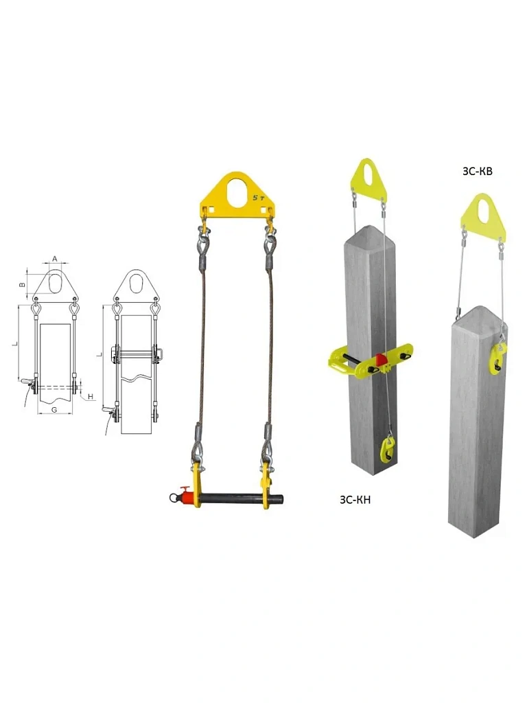 Данный захват обеспечивает надежную строповку груза и его последующий монтаж на высоте. В процессе необходимо участие только 1 человека и нет необходимости подниматься на монтируемую колонну для того, чтобы снять захват, так как это делается с помощью предусмотренной в конструкции захвата оттяжки, с земли.