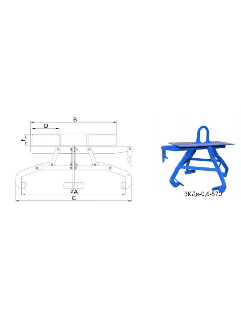 Конструктивно захват ЗКДв это рычажная система со свободными концами грузозахватных органов, расположенных по окружности и охватывающих деталь. Захват груза осуществляется за выступающие его края под весом рычагов и усиливается при подъеме массой самого груза.