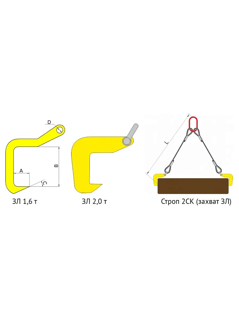 Захват имеет форму крюка, фиксация груза происходит путем внедрения крюка в торец бревна. Захват ЗЛ работает в паре на стропе типа 2СК, при работе с грузами большой длинны рекомендуется использовать траверсу.