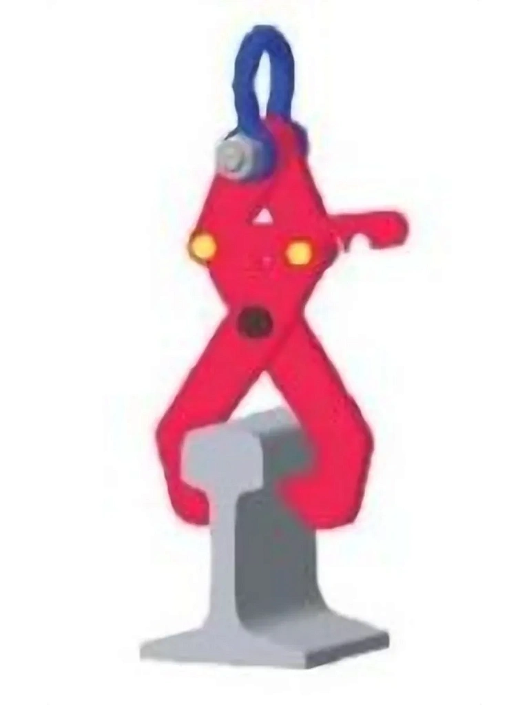 Универсальный захват для подъема рельс за головку и подошву в горизонтальном положении. Снабжён фиксатором, удерживающим захват в максимально раскрытом положении и предотвращающем