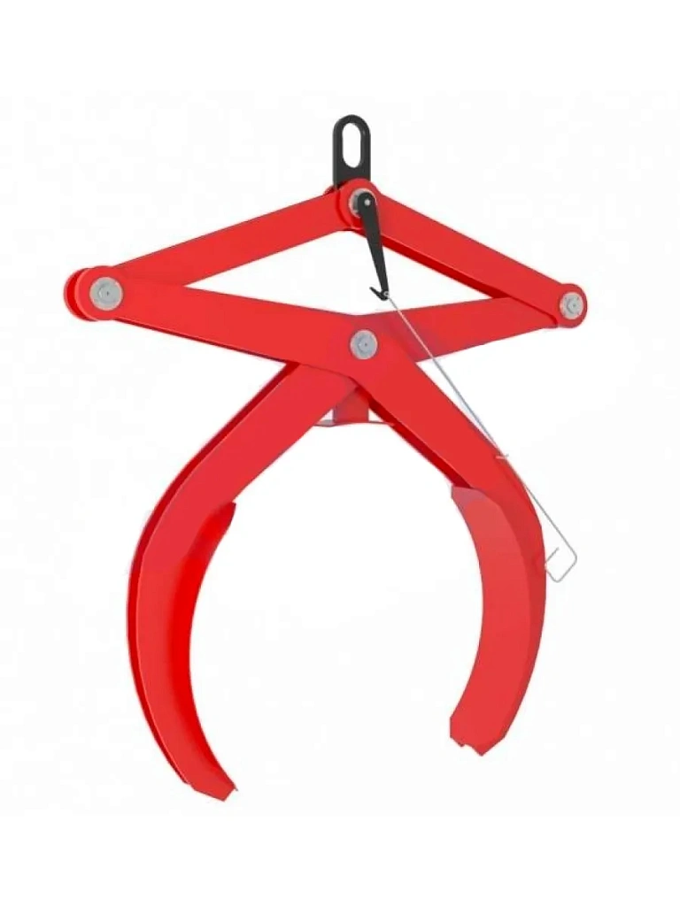 Захват представляет собой конструкцию клещевого типа, предусматривает наличие замка, фиксирующего захват в открытом положении(замок устанавливается на захваты грузоподъемностью свыше 1т и диаметром поднимаемого изделия более 300мм).