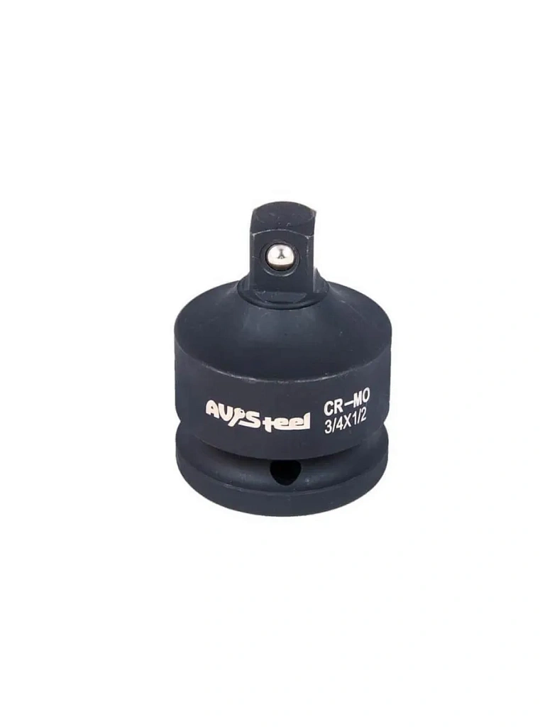 Адаптер ударный с шариковым фиксатором применяется в слесарно-монтажных работах при работе с крепежом разных форматов посадочного квадрата с использованием ударных гайковертов на 3/4".