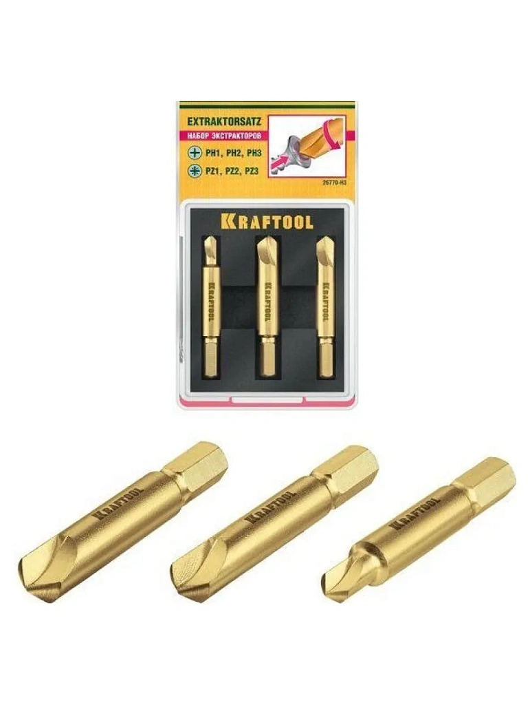 Набор экстракторов применяется для извлечения вышедшего из строя и сломанного крепежа, например болта, шпильки, гвоздя, штифта и др. В комплект входят 3 инструмента разных размеров, благодаря чему можно подобрать необходимый для конкретных рабочих нужд. С помощью специально разработанной формы экстрактора возможно выкручивать крепежи со степенью износа 95%.