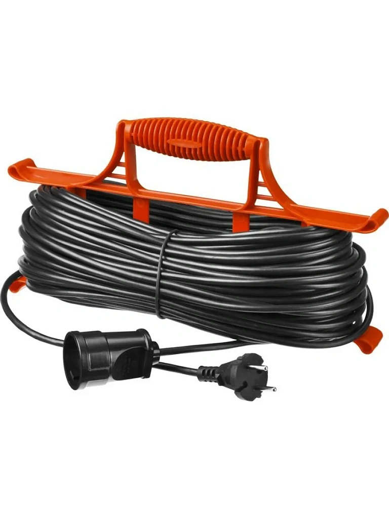 Удлинитель электрический на рамке, 1 гнездо, имеет двойную изоляцию и цельнолитую вилку, что обеспечивает безопасную эксплуатацию. Разборная розетка позволяет произвести ремонт в случае повреждения удлинителя. Надежное крепление провода к клеммам предотвращает нагрев и искрение. Удобная рамка позволяет легко сматывать и разматывать провод, обеспечивает компактное безопасное хранение. Специальные зажимы позволяют зафиксировать провод, не допуская его разматывания. Специальный воротник защищает шнур от перегибов и истирания.