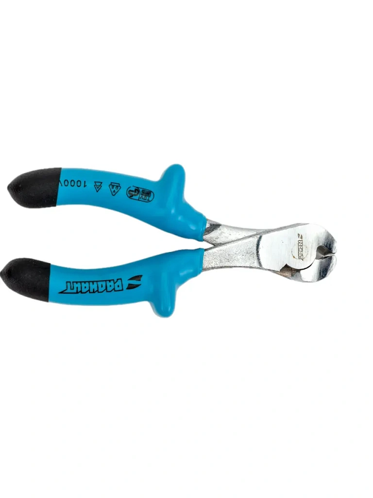 Торцевые кусачки с изолированными ручками 1000 В предназначены для перекусывания кабелей и проводов, в том числе токопроводящих, а также перерезания проволоки и прочих деталей из металла и пластика. Рукоятки из двухслойного пластизоля обеспечивают безопасную работу с токопроводящими деталями под напряжением до 1000 В.