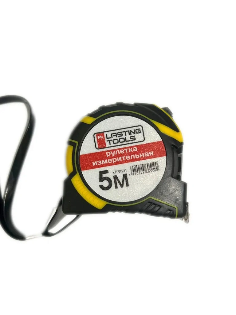 Корпус рулетки выполнен из ударопрочной пластмассы, частично обрезинен и имеет эргономичную форму. Эргономичное устройство рулетки включает три независимых механизма фиксирования ленты, что делает работу с рулеткой наиболее удобной. Измерительная лента имеет полимерное покрытие, стойкое к абразивному воздействию. Ограничитель измерительной ленты магнитный, что позволяет фиксировать его на металлических поверхностях. Цена деления – 1