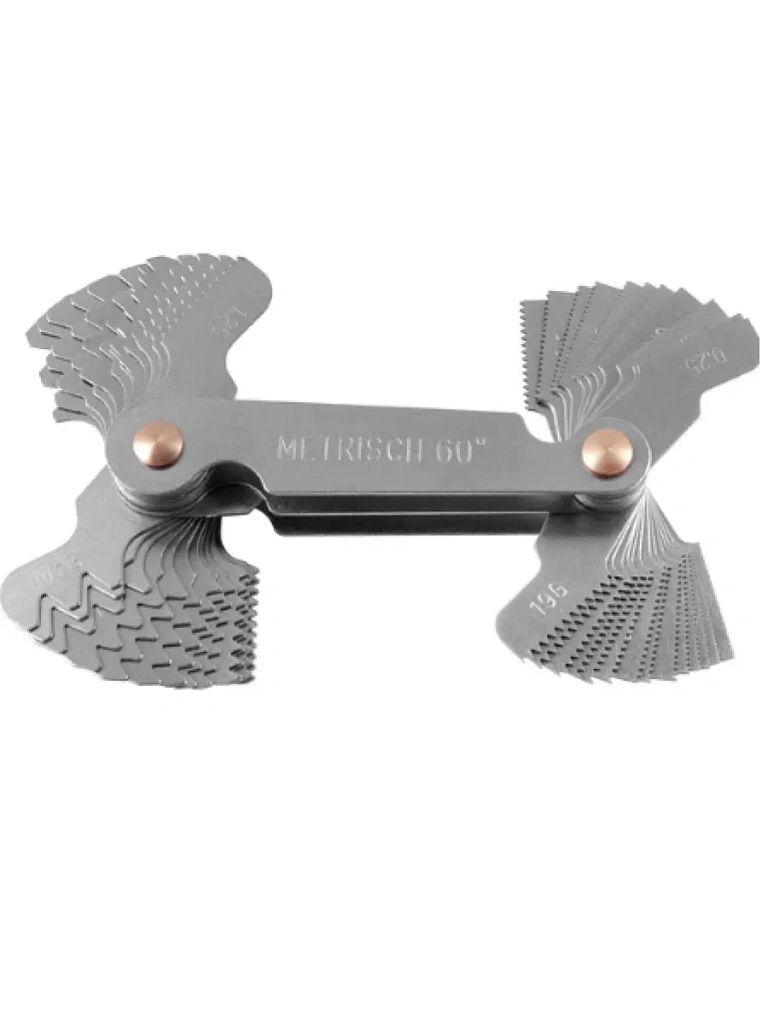 Резьбомер применим для определения шага и типа резьбы. Включает в себя большое количество лезвий - обеспечивает более высокий шанс совпадения при работе с метрическими и дюймовыми резьбами. В сложенном виде компактный, легко переносить. Жесткие лезвия не гнутся, что сохраняет точность измерений
