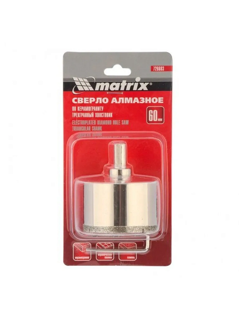 Универсальное алмазное сверло по керамограниту 60 х 67 мм, с 3-гранным хвостовиком, применяется для сверления стекла, плитки, кафеля. А за счет высокой концентрации алмазов в режущем слое оно легко справляется с выполнением отверстий в керамограните. Сверло рассчитано на профессиональное использование с дрелями и шуруповертами. Водяное охлаждение в процессе работы значительно повысит срок его службы.