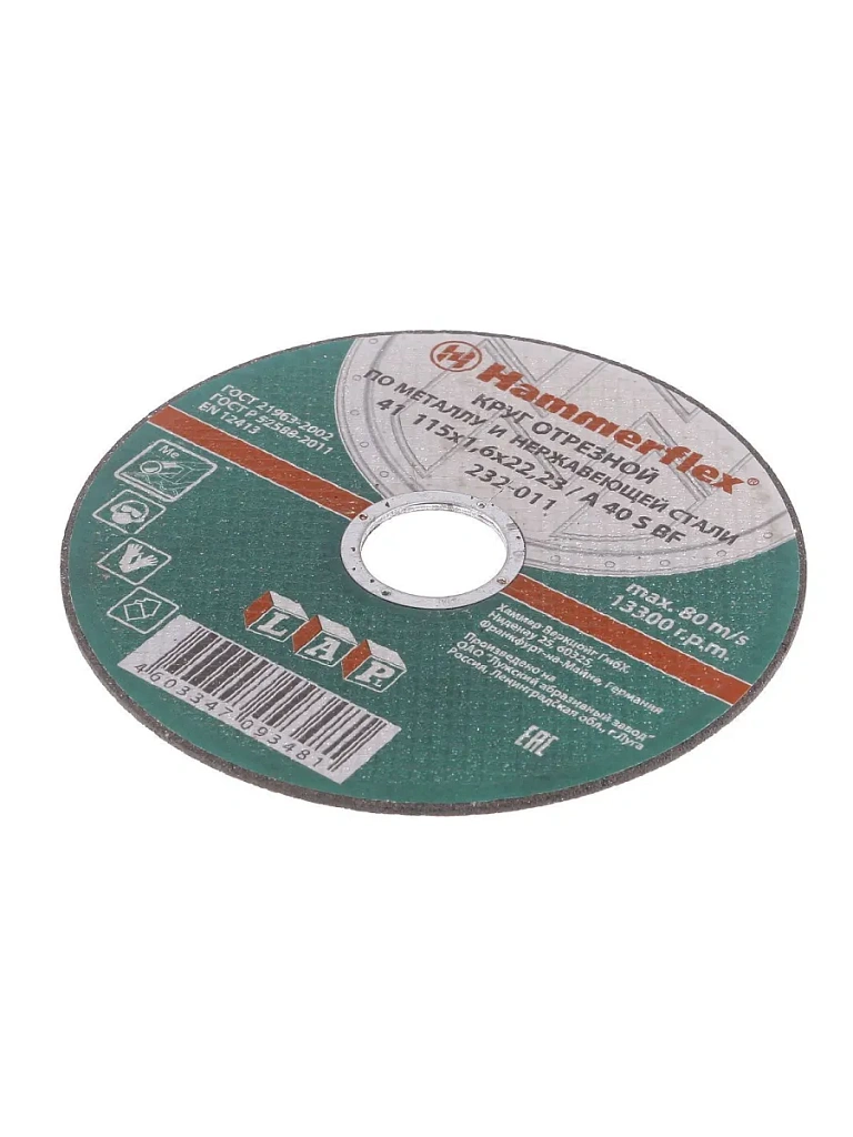 115 x 1.6 x 22 A 40 S BF Круг отр.Hammer Flex 232-011 по металлу и нержавеющей стали