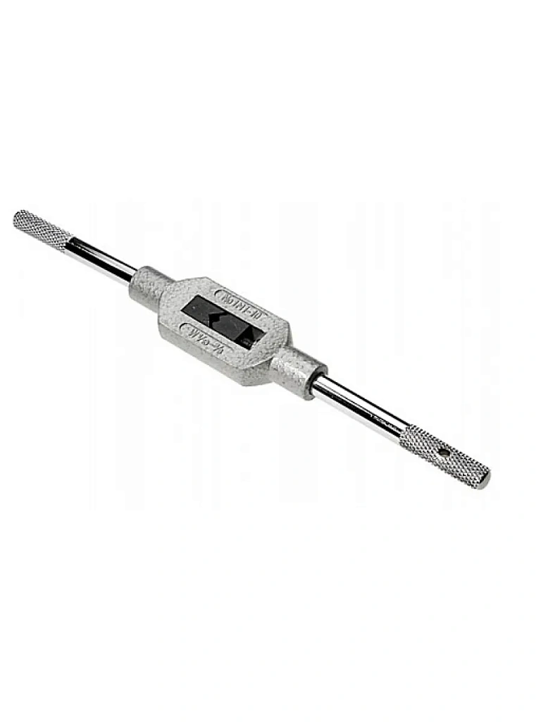 Предназначен для четкой фиксации метчиков в процессе нарезания метрической резьбы. Инструмент изготовлен из качественной стали высокой прочности и надежности. Специальное рифленое покрытие на рукоятках обеспечивает удобное удержание инструмента.