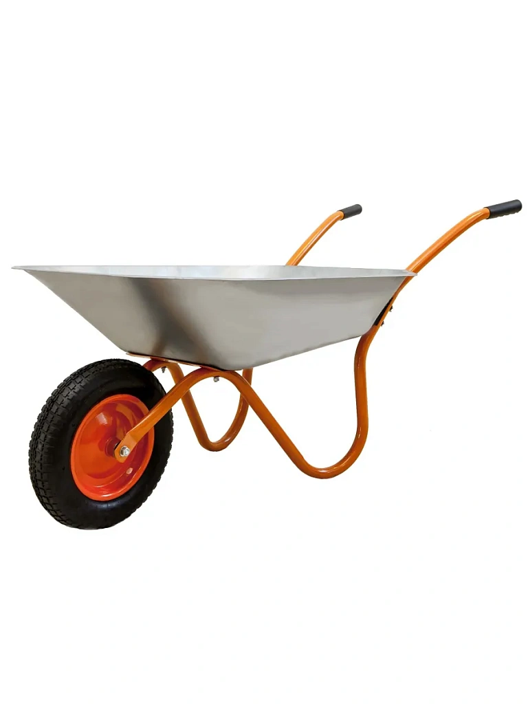 Садовая одноколесная тачка используется для транспортировки различных грузов. Применяется на дачном участке для перевозки садового мусора, земли для посадки растений и урожая. Пригодна для использования на стройплощадке. Модель способна выдерживать грузы весом до 150 килограммов. Резиновые накладки на ручках обеспечивают надежный хват и предотвращают выскальзывание.