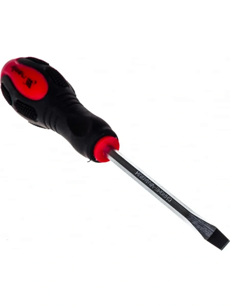 Ударная отвертка используется при монтажно-демонтажных работах с резьбовыми соединениями. Она оснащена стальным затыльником, позволяющим наносить удары молотком или киянкой. Отвертка имеет прочный стержень из хромованадиевой стали, наконечник которого намагничен для более удобной работы с крепежом. Двухкомпонентная рукоятка не скользит в руке, обеспечивая крепкий захват.