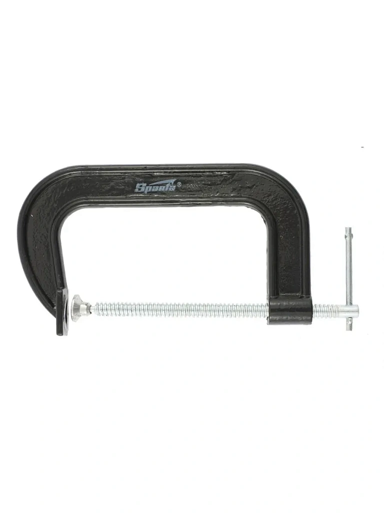 Рама струбцины покрыта цветным лаком. Винт струбцины со специальным зажимом и крупной червячной резьбой позволяет надежно фиксировать предметы.