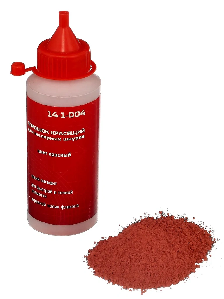 В набор входит разметочный шнур в пластмассовом обрезиненном корпусе и красный меловой порошок (флакон 115 г). Применяется для нанесения вертикальной и горизонтальной разметки при проведении строительных и отделочных работ.