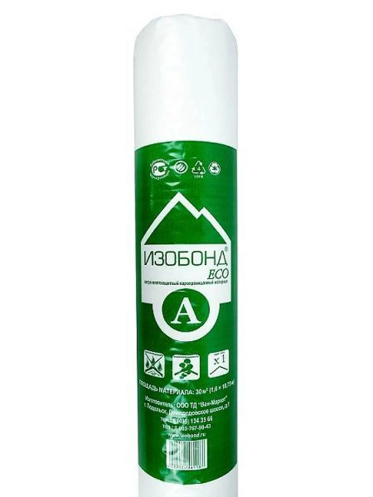 ИЗОБОНД A ECO – паропроницаемый, однослойный, ветро-влагозащитный материал, изготовленный из полипропилена высшего сорта, который предназначен для защиты утеплителя и других элементов здания (сооружения), применяемых в конструкциях утепленной скатной кровли, вентилируемых фасадов, каркасных стен, стен с наружным утеплением, а также внутренних стен (межкомнатных перегородок) от проникновения ветра, влаги, атмосферных осадков и конденсата.