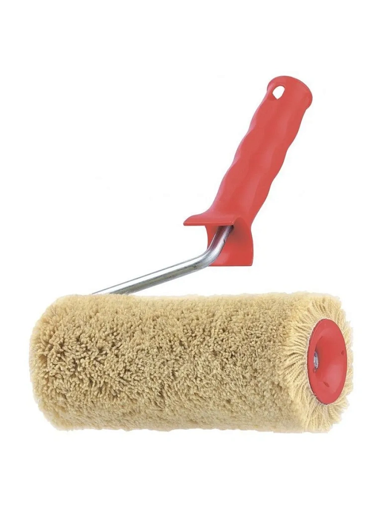 Произведен по технологии Termofusion. Термически приклеенная шубка валика износостойкая и бесшовная, создает идеально ровное покрытие. Улучшенная конструкция ролика обеспечивает легкое и свободное вращение. Материал шубки валика полиакрил. Применяется для работ с водно-дисперсионными красками и красками на основе химических растворителей. Предназначен для нанесения краски на неровные грубые поверхности. В комплекте двухкомпонентная ручка, бюгель оцинкован.