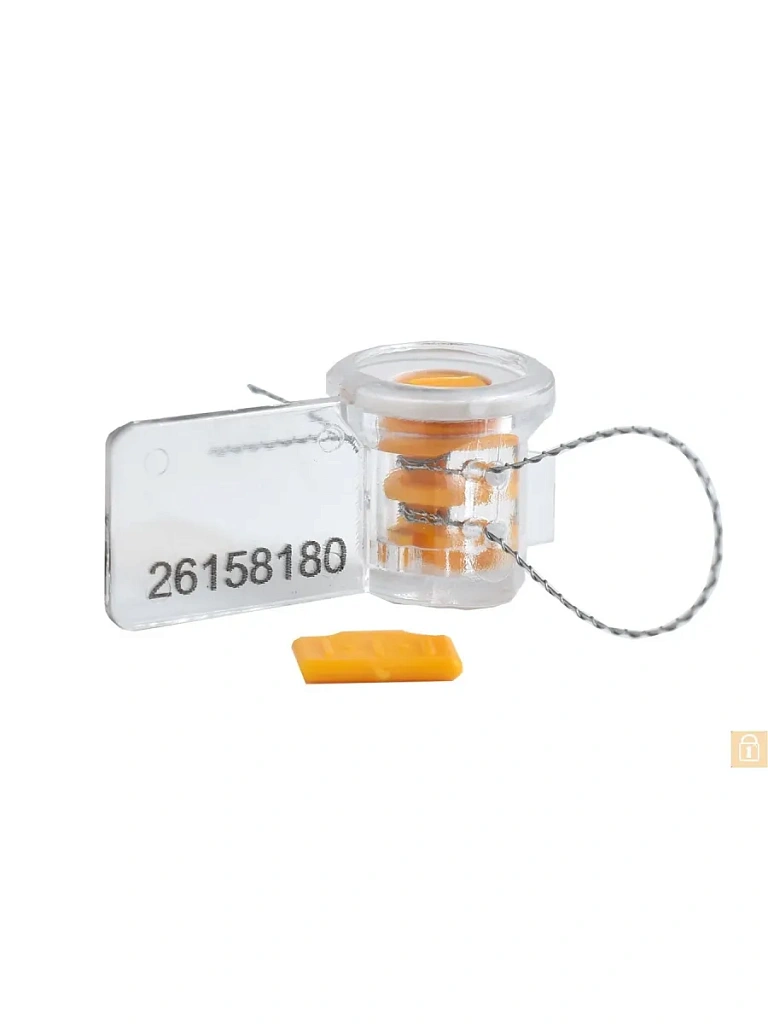 Состоит из трех частей: прозрачного корпуса, цветной вставки в форме барабана, установленной внутрь корпуса и специальной накладки, впаянном на молекулярном уровне. Прозрачный корпус пломбы обеспечивает визуальный контроль барабана, вставки и проволоки.