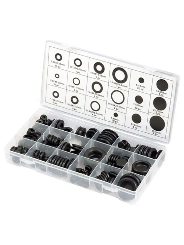 -Изделия набора СИБРТЕХ D 6,35 - 25,4 мм 125 предметов 47599 изготовлены из резины;