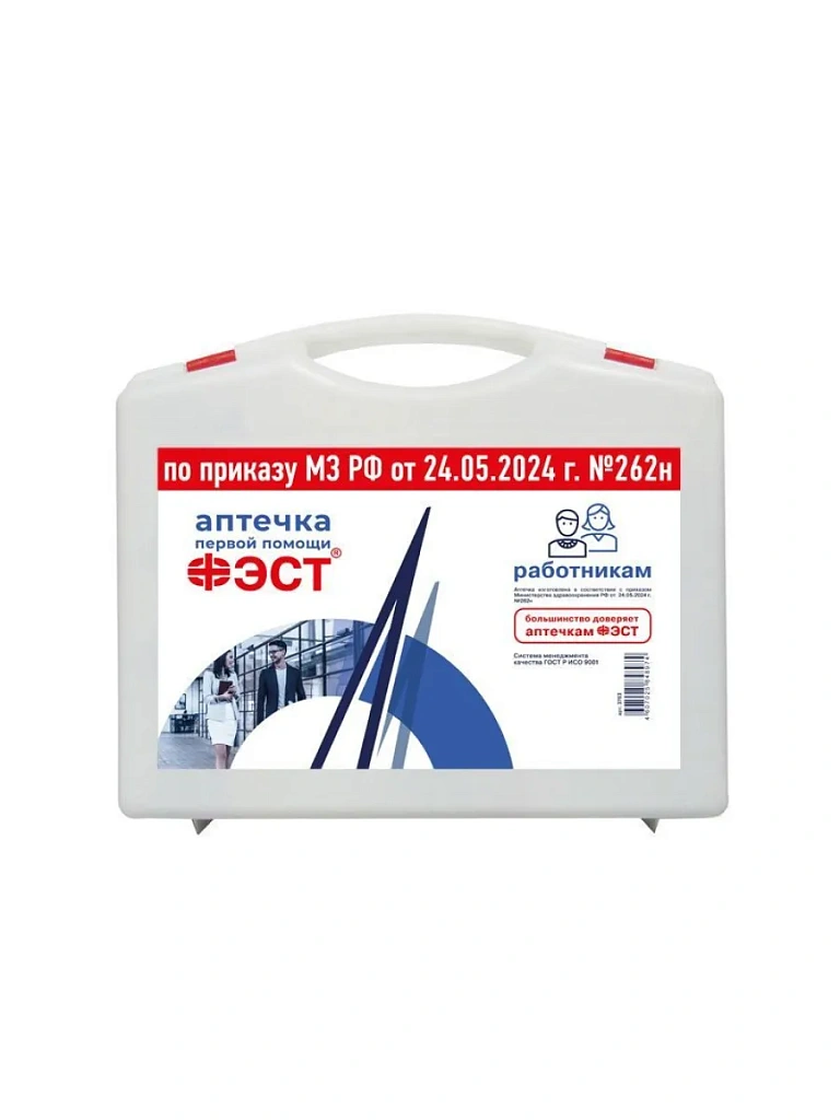 Аптечка изготовлена в соответствии с приказом Министерства здравоохранения РФ от 24.05.2024 г. №262н.
