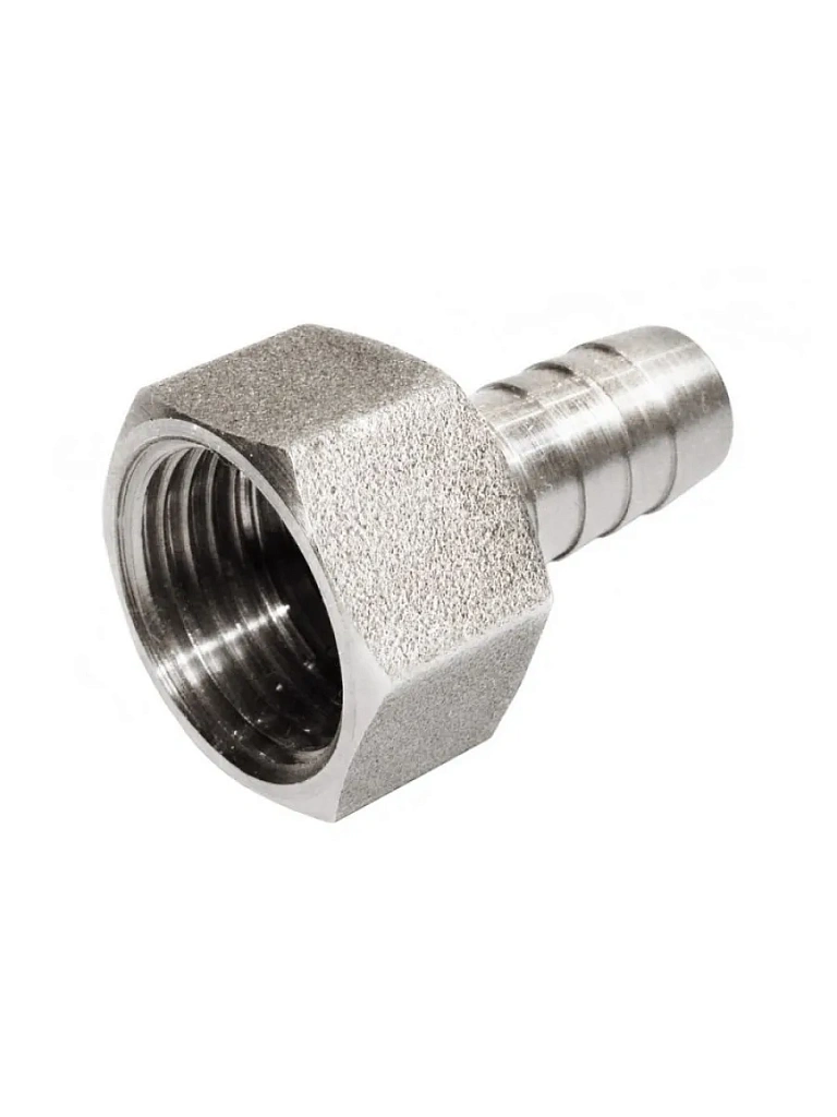 Штуцер под шланг с внутренней резьбой предназначен для подключения поливочного шланга к водозапорной арматуре или непосредственно к трубопроводу. Изделие можно применять также в других системах с неагрессивной к используемым материалам рабочей средой (горячая вода, незамерзающий теплоноситель, сжатый воздух и т.д.). Штуцер изготавливается из горячепрессованной латуни. Дополнительный запас прочности обеспечивается за счёт покрытия никелем, предотвращающим появление коррозии, а также защищающим от механического износа и вредного воздействия агрессивных жидкостей и воздушно-газовых сред. Присоединительный патрубок штуцера имеет внутреннюю резьбу, а сам штуцер для шланга имеет конфигурацию, эффективную для его фиксации. Присоединение шланга необходимо производить с помощью стальных винтовых хомутов.