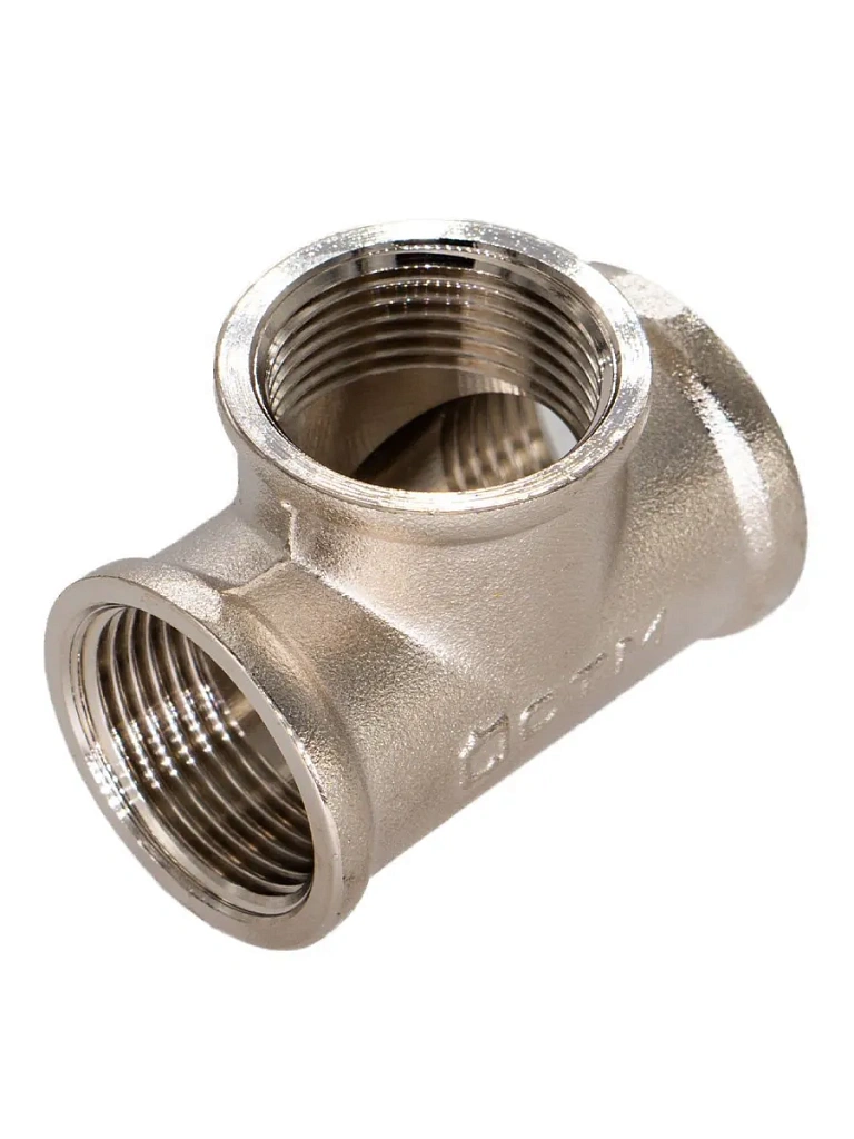 Тройник с внутренней резьбой - трёхсторонний резьбовой фитинг. Предназначается для соединения частей трубопровода. Тройник изготавливается из высококачественной горячепрессованной латуни. Никелированное покрытие тройника даёт дополнительный запас прочности. Никелирование предотвращает появление коррозии, а также защищает от механического износа и вредного воздействия агрессивных жидкостей и воздушно-газовых сред. Резьба тройника нарезается на станке с ЧПУ.