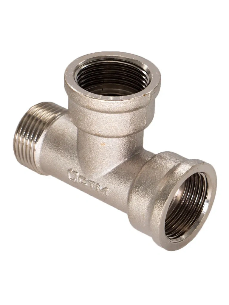 Тройник с внутренней/внутренней/наружной резьбой - трёхсторонний резьбовой фитинг. Предназначается для соединения частей трубопровода. Тройник изготавливается из высококачественной горячепрессованной латуни. Никелированное покрытие тройника даёт дополнительный запас прочности. Никелирование предотвращает появление коррозии, а также защищает от механического износа и вредного воздействия агрессивных жидкостей и воздушно-газовых сред. Резьба тройника нарезается на станке с ЧПУ. Наружная резьба тройника оснащена насечками, обеспечивающими лучшее сцепление с уплотнительным материалом при монтаже.
