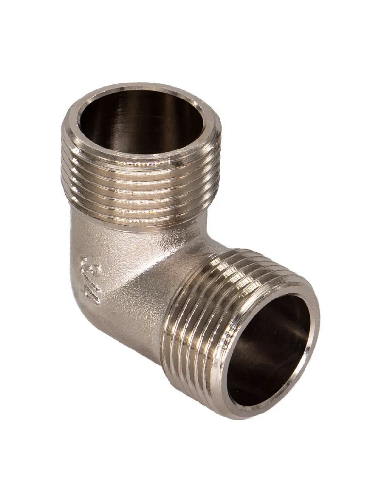 Уголок с наружной резьбой предназначен для монтажа углового соединения трубопровода. Уголок изготавливается из высококачественной горячепрессованной латуни. Никелированное покрытие уголка даёт дополнительный запас прочности. Никелирование предотвращает появление коррозии, а также защищает от механического износа и вредного воздействия агрессивных жидкостей и воздушно-газовых сред. Резьба уголка нарезается на станке с ЧПУ.
