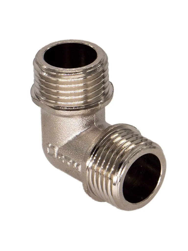 Уголок с ограничителем с наружной резьбой предназначен для монтажа углового соединения трубопровода. Уголок изготавливается из высококачественной горячепрессованной латуни. Никелированное покрытие уголка даёт дополнительный запас прочности. Никелирование предотвращает появление коррозии, а также защищает от механического износа и вредного воздействия агрессивных жидкостей и воздушно-газовых сред. Резьба уголка нарезается на станке с ЧПУ и оснащена насечками, обеспечивающими лучшее сцепление с уплотнительным материалом при монтаже.