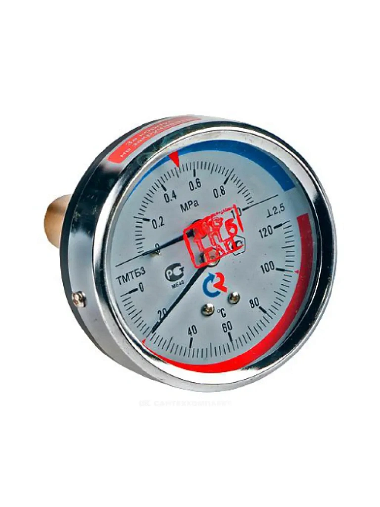 Особенности конструкции Термоманометр объединяет в одном корпусе манометр и термометр, имеет две шкалы — давления и температуры.