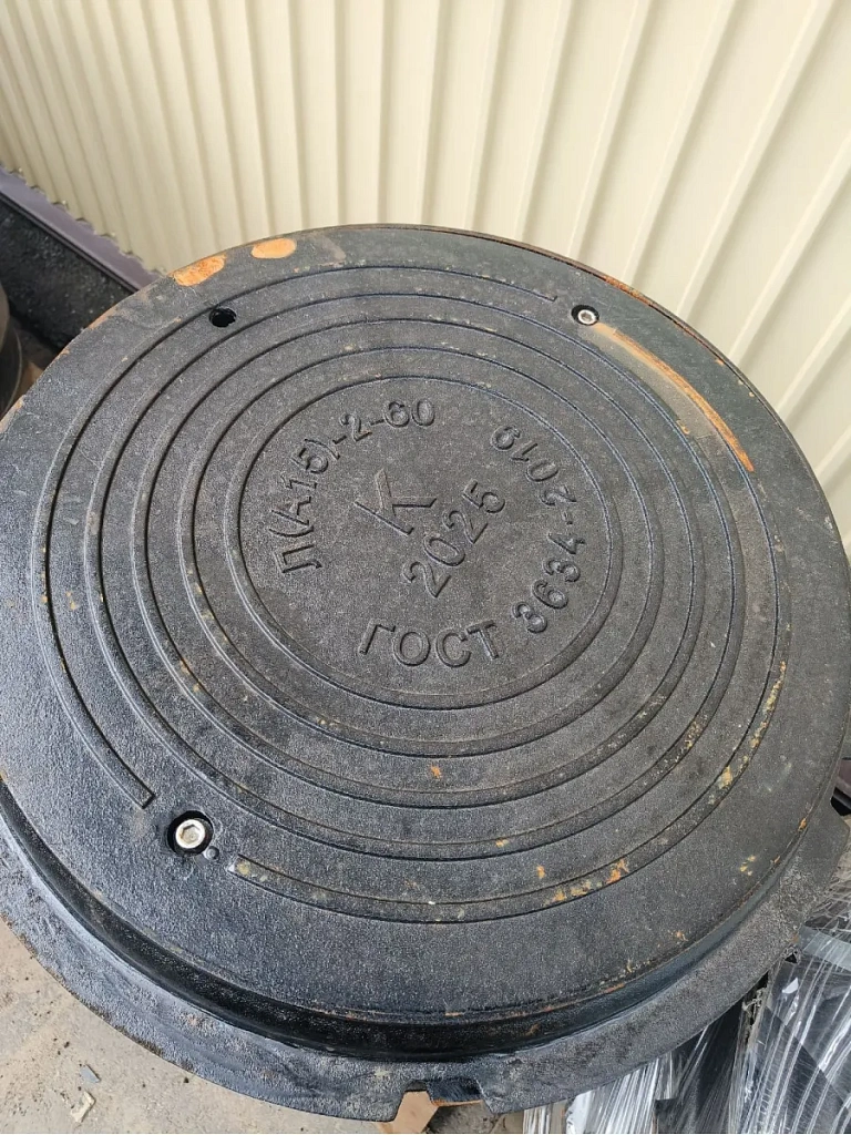 Люк канализационный чугунный легкий 1,5 тн Л (А15) К-1-60 без замка С ЛОГОТИПОМ ПОД ЗАКАЗ