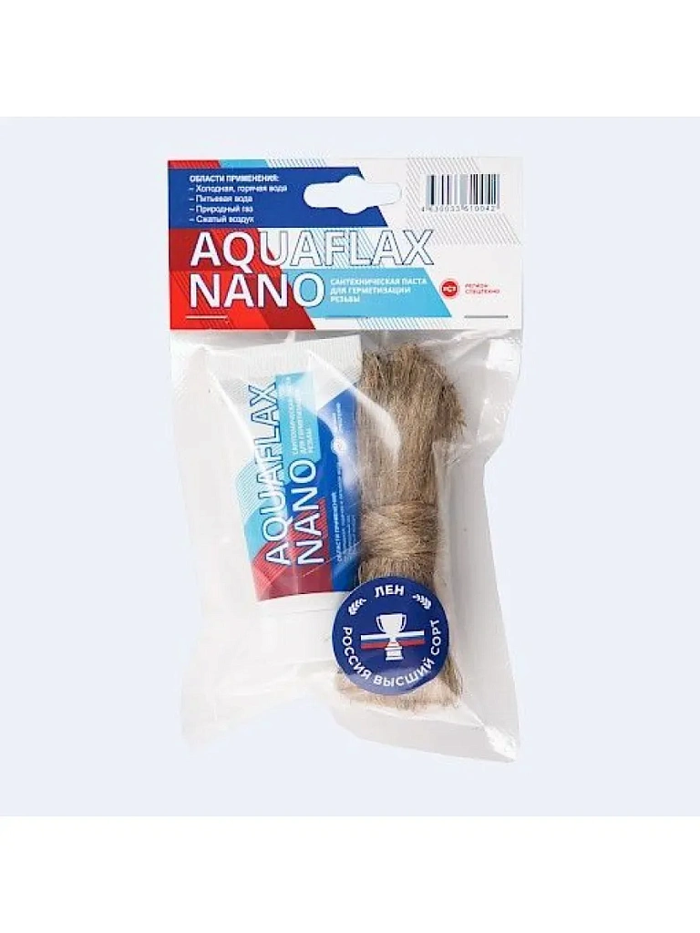 Уплотнительная паста 80 грамм, тюбик + 20 грамм лён Aquaflax nano 04051 набор включает в себя необходимое оснащения для качественной герметизации соединений в системах водо- и газоснабжения.