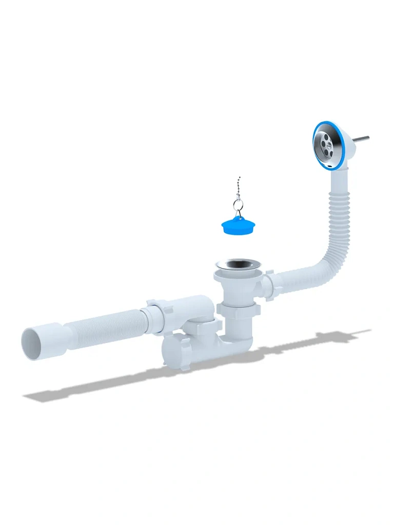 - Для ванн с отверстием слива Ø50 мм и отверстием перелива от Ø36 до 63 мм (стандартное отверстие 50 мм)