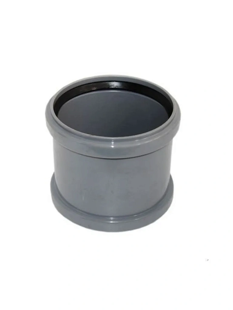 Муфта служит для соединения канализационных труб, не имеющих раструб либо в случае их ремонта. В качестве уплотнителей используются резиновые кольца манжетного типа с распорным вкладышем. Монтаж желательно производить с применением специальной силиконовой смазки.