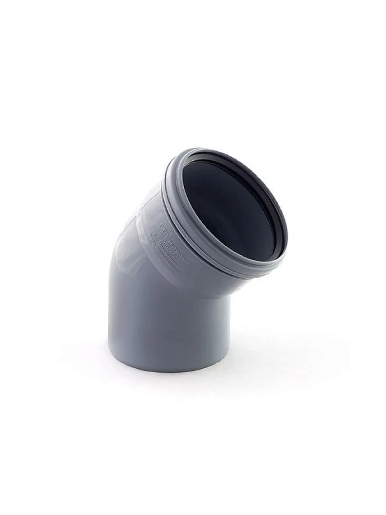 Отвод канализационный предназначен для изменения поворота канализационного трубопровода на угол 15, 30, 45, 67,5 и 87 градусов.