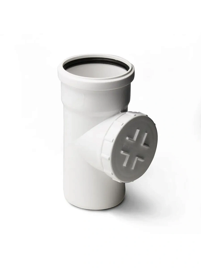Ревизия предназначена для прочистки канализационного стояка. Представляет собой вставку диаметром 50 мм или 110 мм в линейную часть канализационной трубы с заглушкой на резьбовом соединении.