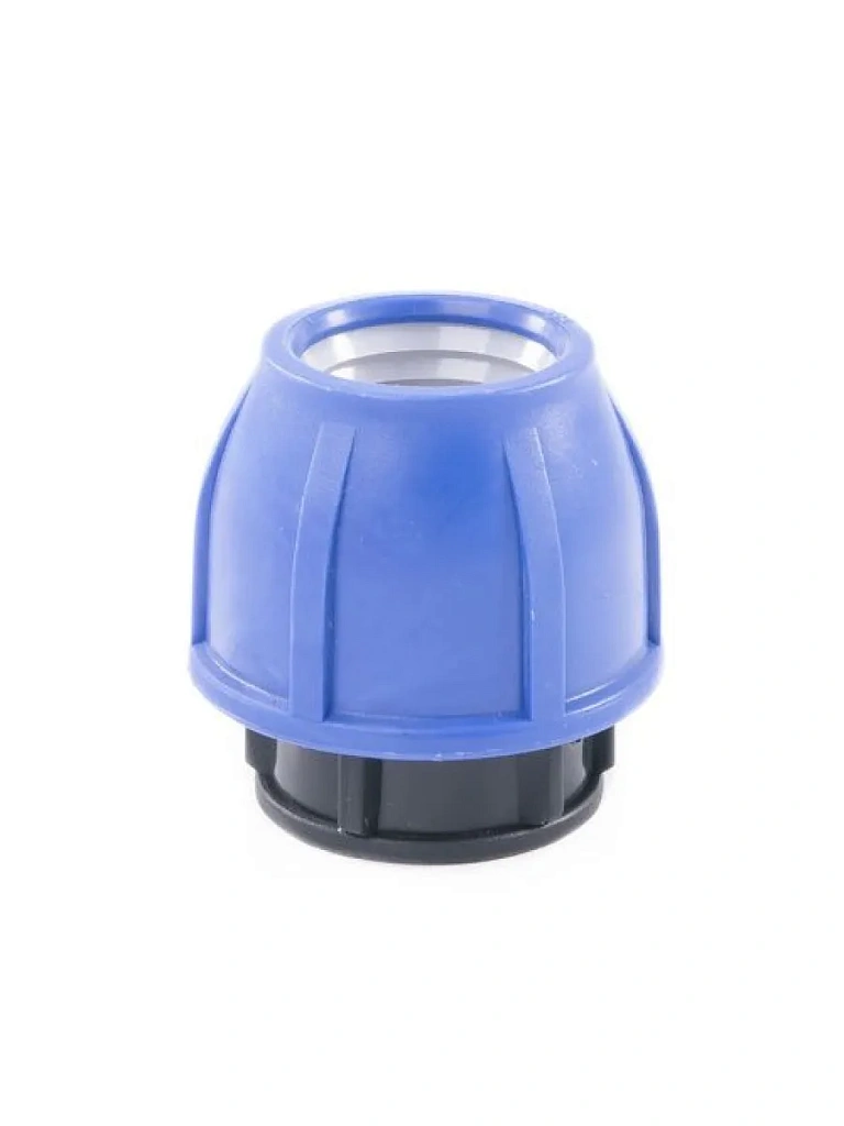 Заглушка компрессионная концевая для труб ПНД (полиэтилена низкого давления). Монтаж системы технического трубопровода либо трубопровода для питьевой воды довольно простой. Труба ПНД вставляется через втулку запрессовывающую в компрессионную заглушку, фиксируется накидным кольцом, гайка плотно закручивается. Для того, чтобы система была герметична, для защиты системы от протекания, используется уплотнительное кольцо. Заглушка изготовлена из полипропилена и может выдерживать давление до 10 бар.