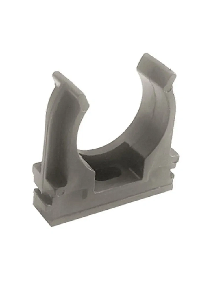 Пластиковый зажим (клипса) предназначен для крепежа трубы с помощью шурупа к стене. Возможно соединение клипс между собой, а также с клипсами других размеров.