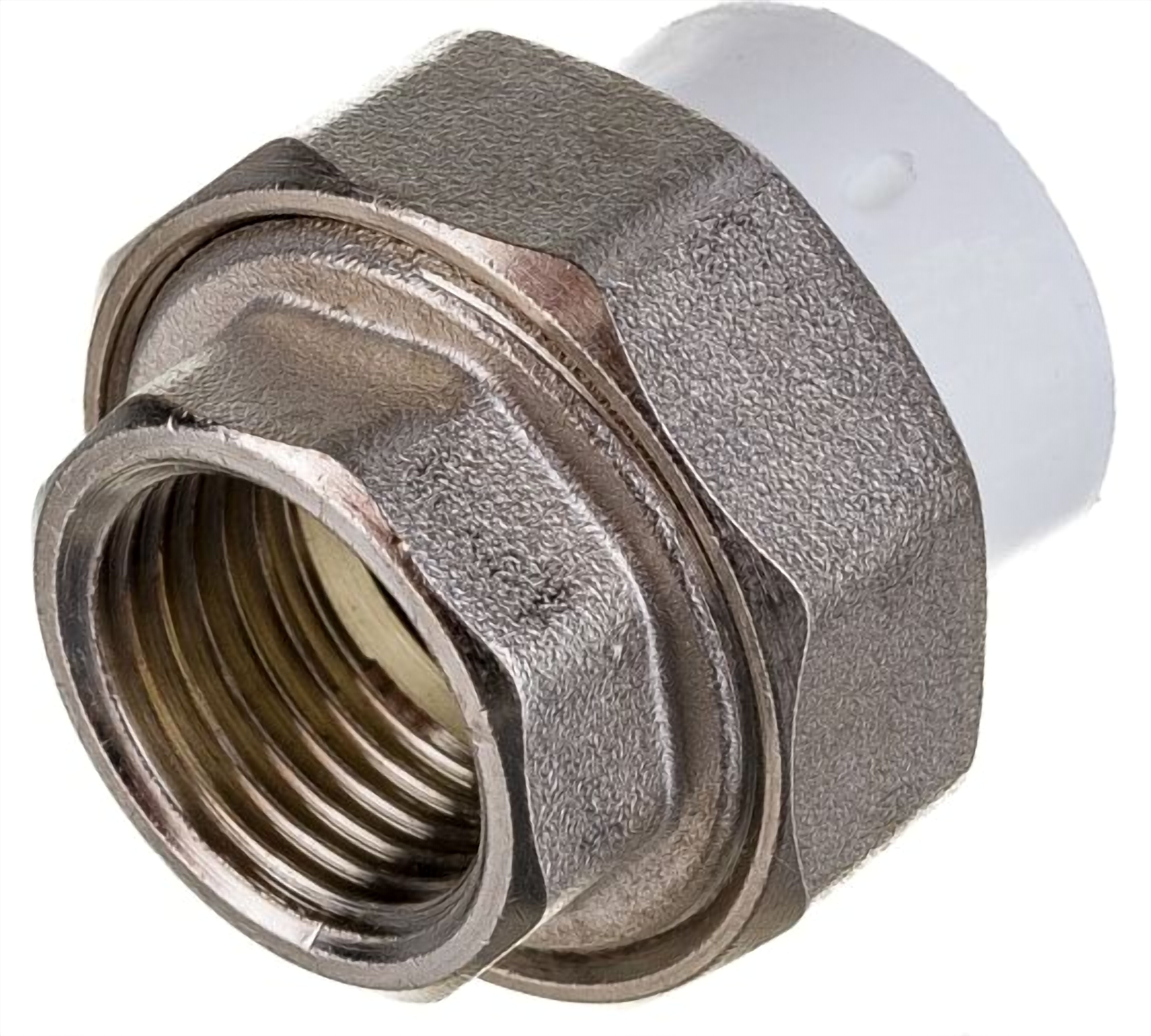 Комбинированный полипропиленовый фитинг, закладная деталь изготовлена из латуни марки ЛС-59-1. Представляет собой разъемное соединение между металлической и пластиковой трубой. Латунные части производятся методом горячего штампования, пластиковые - методом литья под давлением.