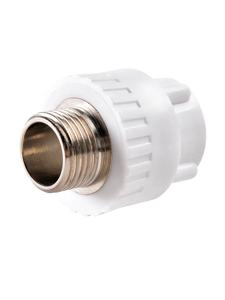 Муфта комбинированная с наружной резьбой предназначена для соединения полипропиленовой трубы и компонента системы с внутренней резьбой.