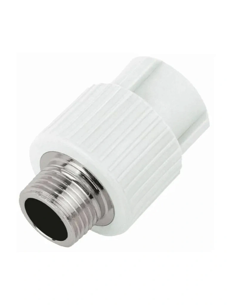 Муфта комбинированная с наружной резьбой предназначена для соединения полипропиленовой трубы и компонента системы с внутренней резьбой.