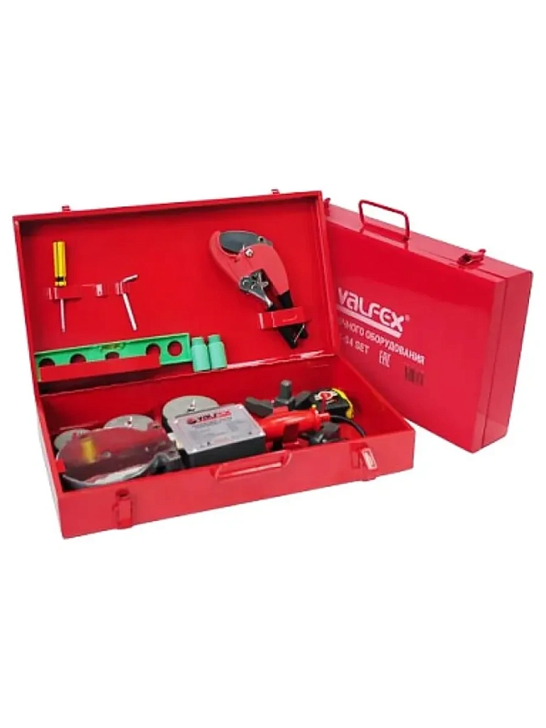 Сварочный аппарат для PP-R труб VALFEX Дн20-110, 2.0кВт, 50-75мм VWM-04 SET 024-0269 предназначен для ручной раструбной полифузионной сварки полимерных труб и фитингов дисковидным нагревательным элементом.